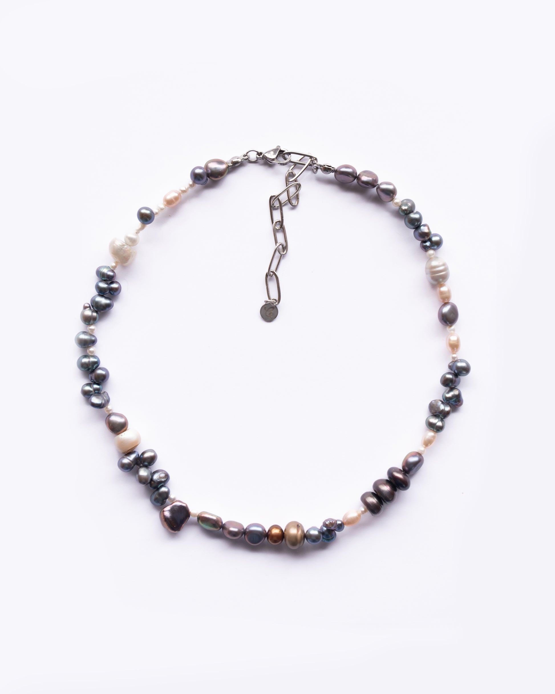 The blue freshwater pearls mimic the gentle rhythm of ocean waves, capturing the fleeting beauty of the moment between day and night.