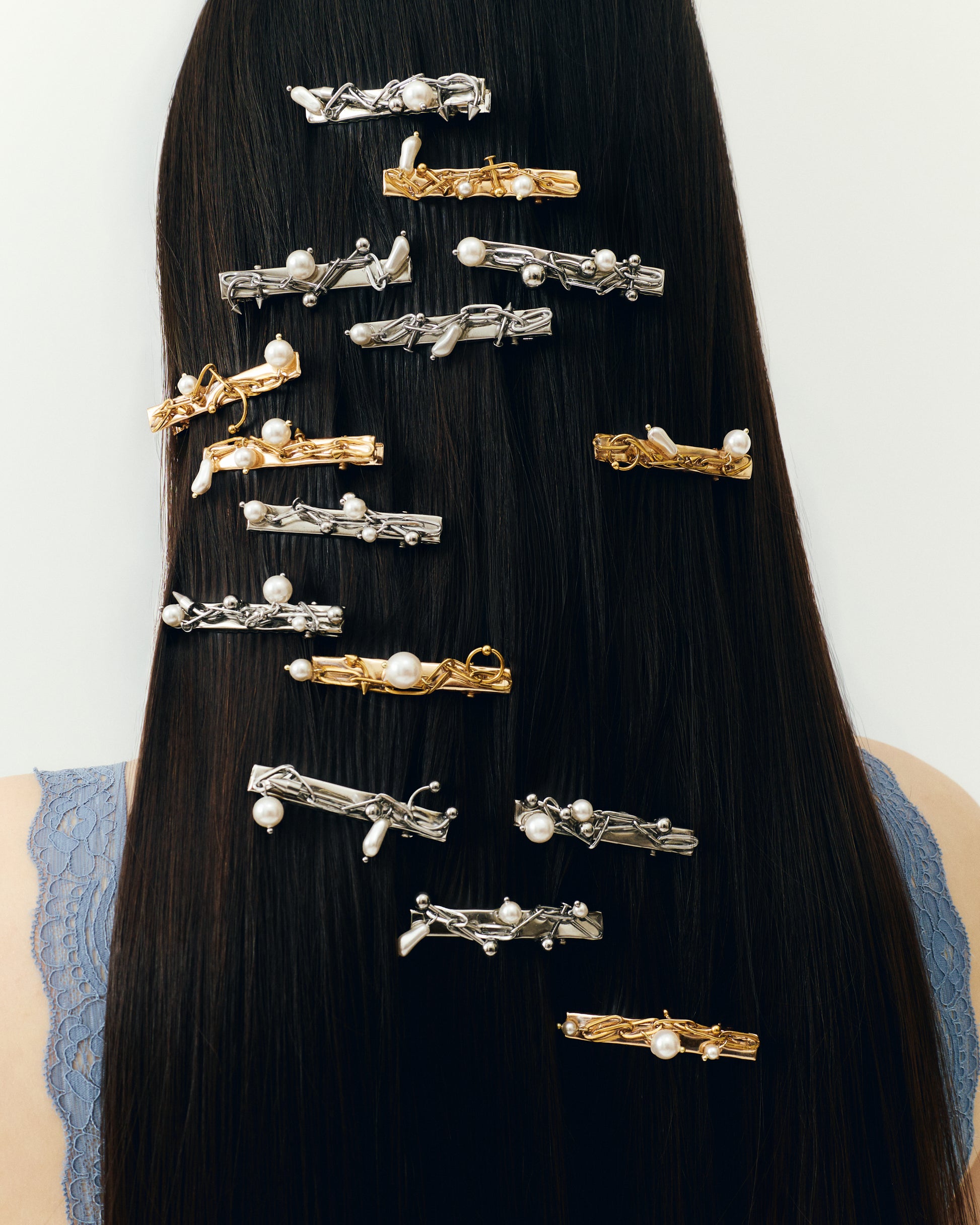 One-of-a-kind hair clips, crafted with austrian crystal pearls and stainless steel details.