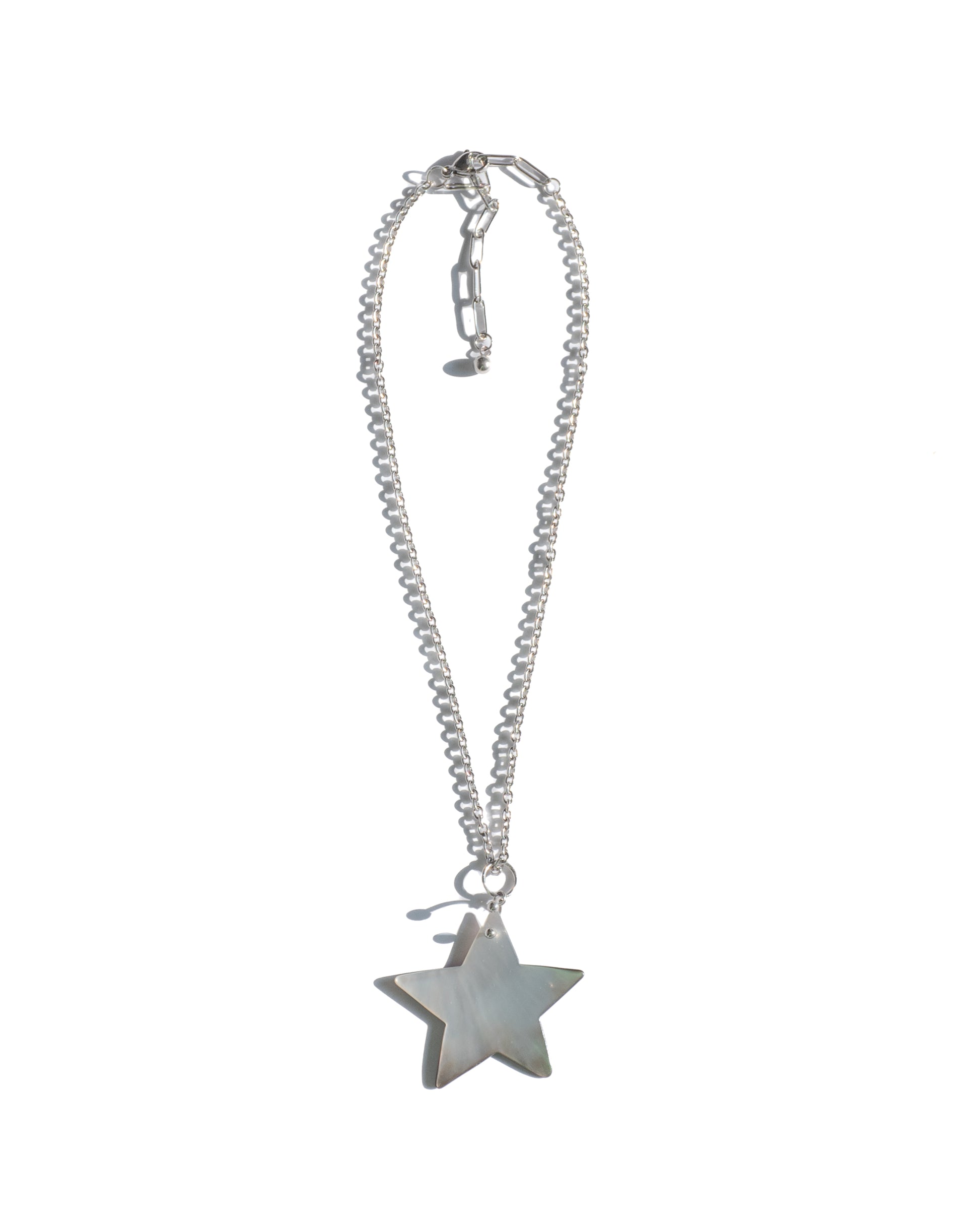 Mother-of-pearl star pendant with stainless steel chain.